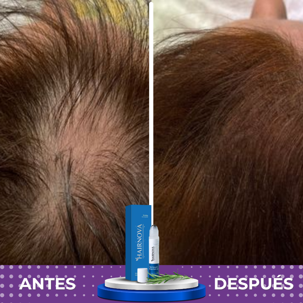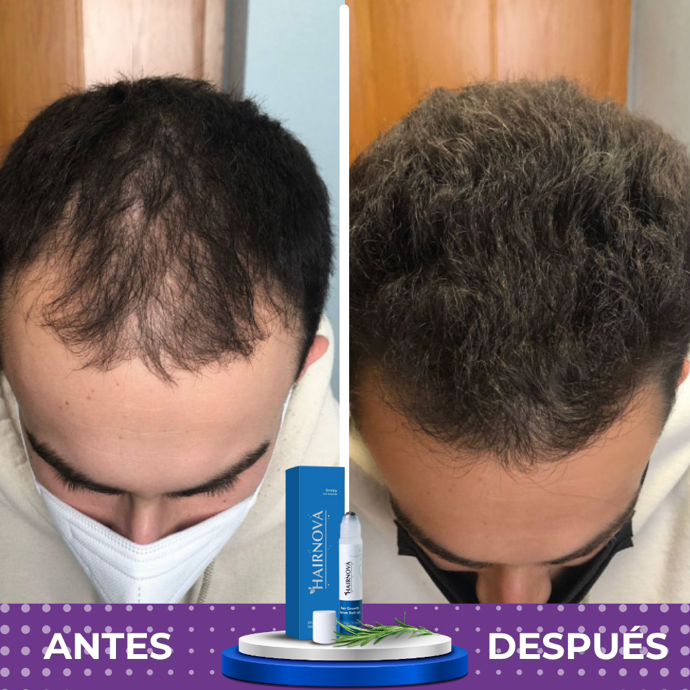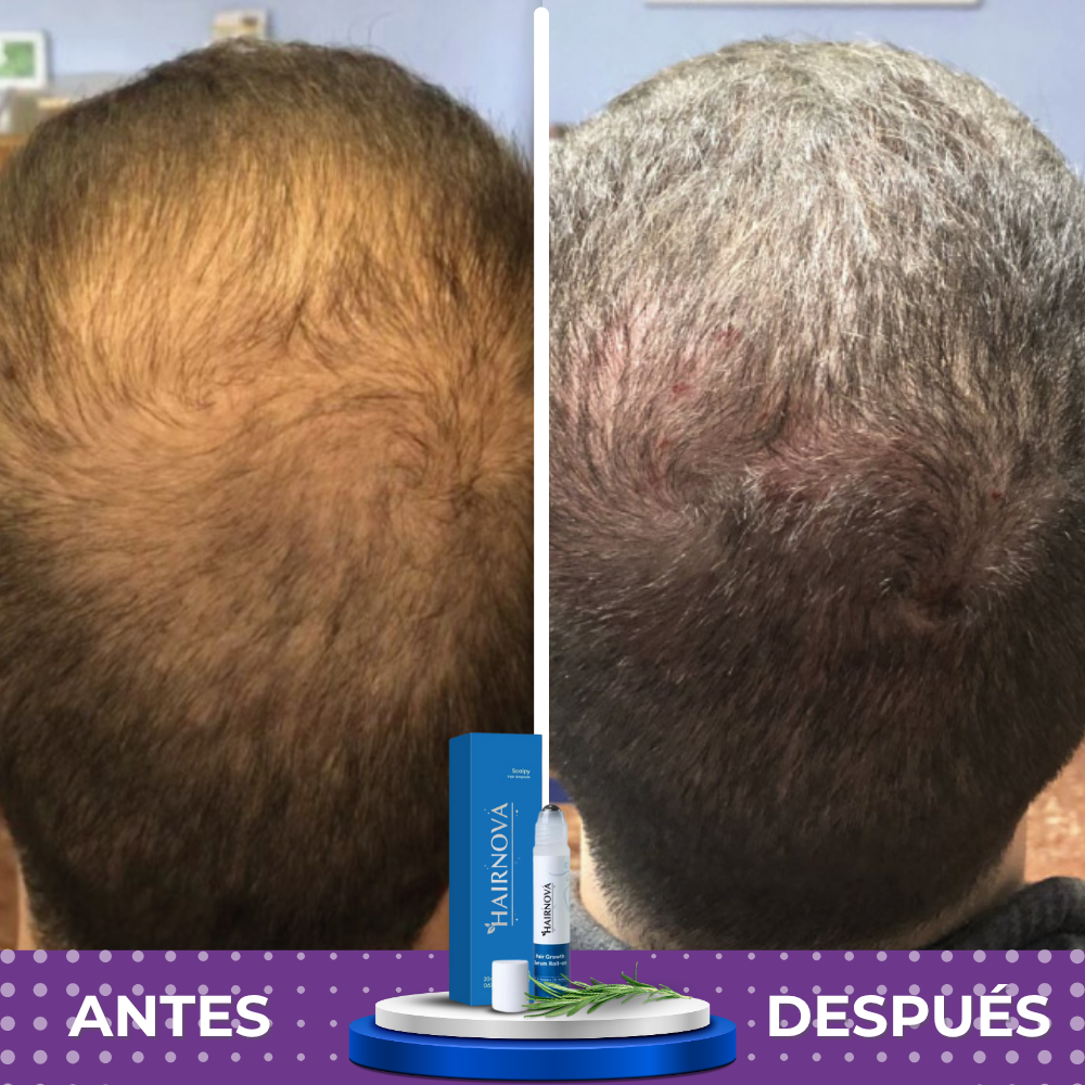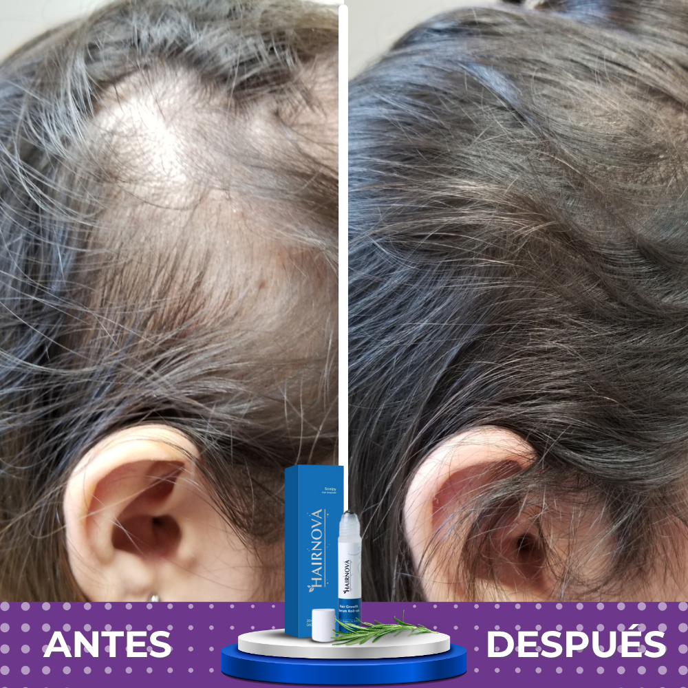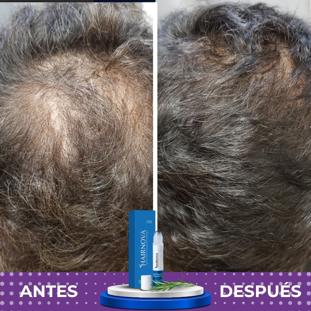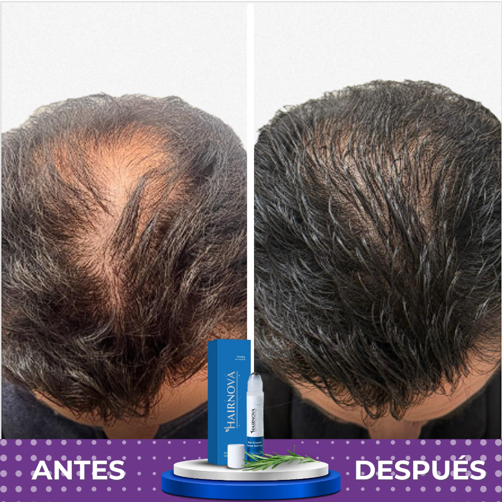 HAIRNOVA™ es elsérum roll-on avanzado que ataca la raíz del problema: activa los folículos dormidos, reduce la caída y estimula el crecimiento de cabello nuevo desde el primer uso. Con su fórmula 100 % natural, notarás un cabello más grueso, lleno y saludable en semanas. No esperes más: transforma tu look y tu confianza hoy mismo.